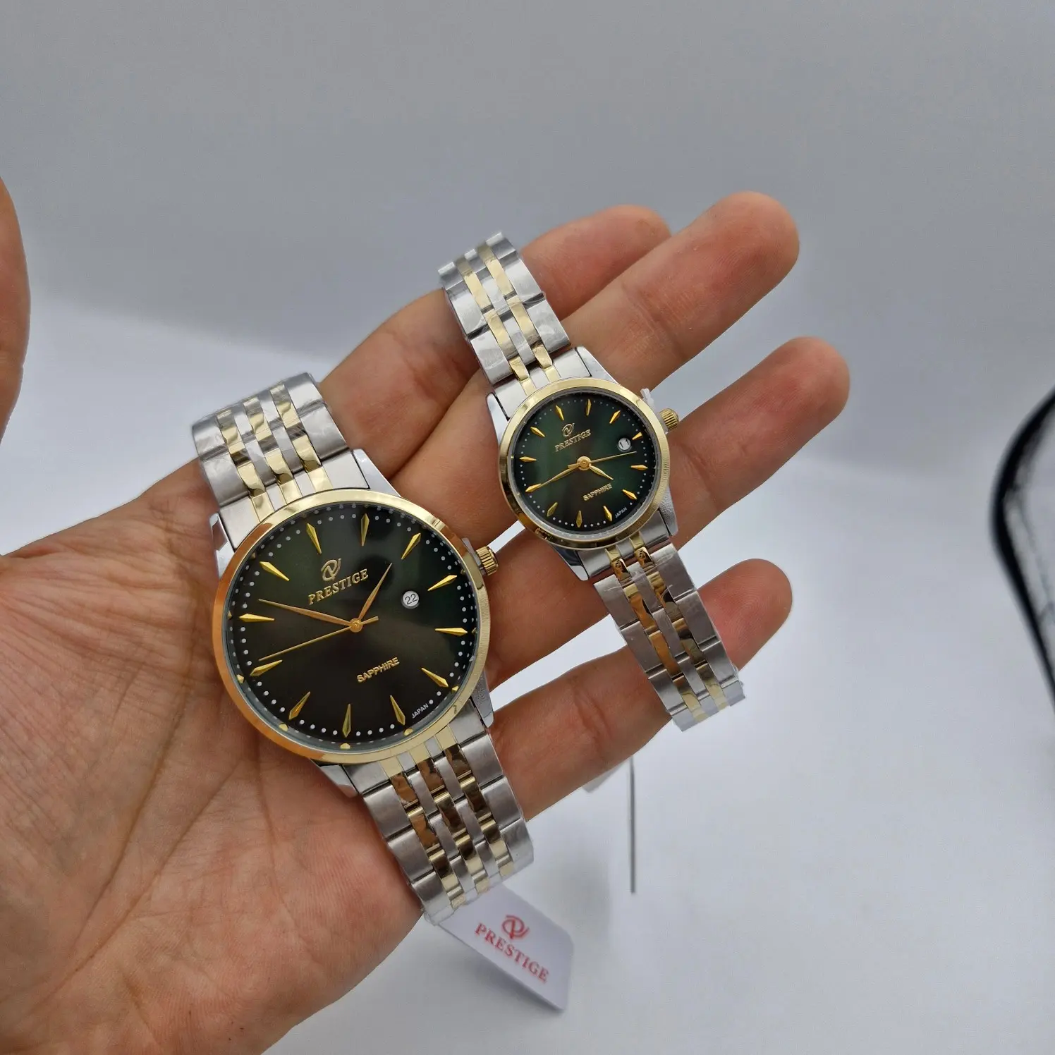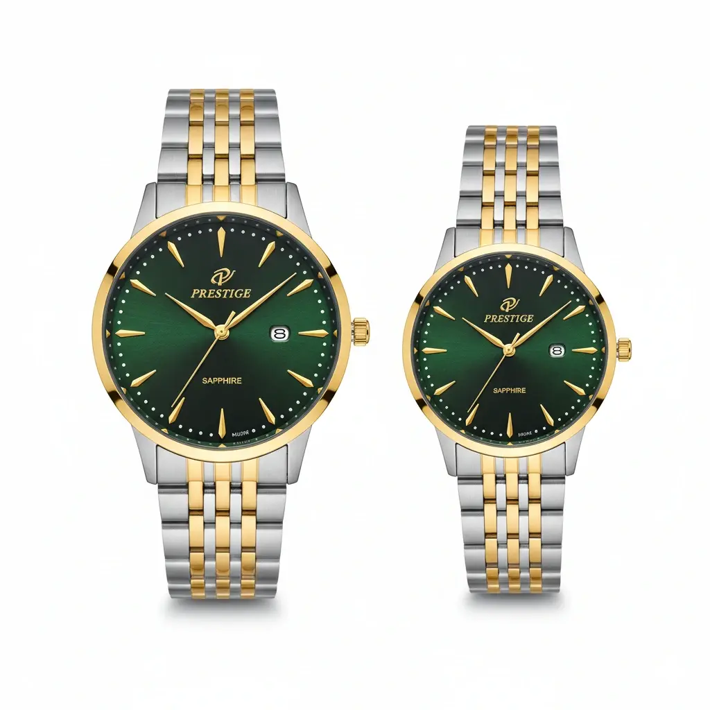 ساعت ست زنانه و مردانه پرستیژ مدل P9204 لیمیتد ادیشن با صفحه سبز و بند دو رنگ استیل
