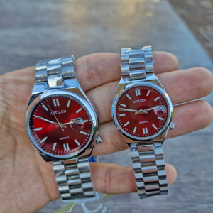 ساعت ست سیتیزن زنانه و مردانه مدل سویوسا قرمز، انتخابی خاص برای زوج‌هایی است که به هماهنگی استایل، ظرافت و حس لوکس بودن اهمیت می‌دهند. این ست جذاب با صفحه قرمز چری، نه‌تنها جلوه‌ای متفاوت و چشمگیر دارد، بلکه نیاز شما به یک ساعت شیک و قابل‌اعتماد برای استفاده روزمره و موقعیت‌های خاص را به‌خوبی برطرف می‌کند.