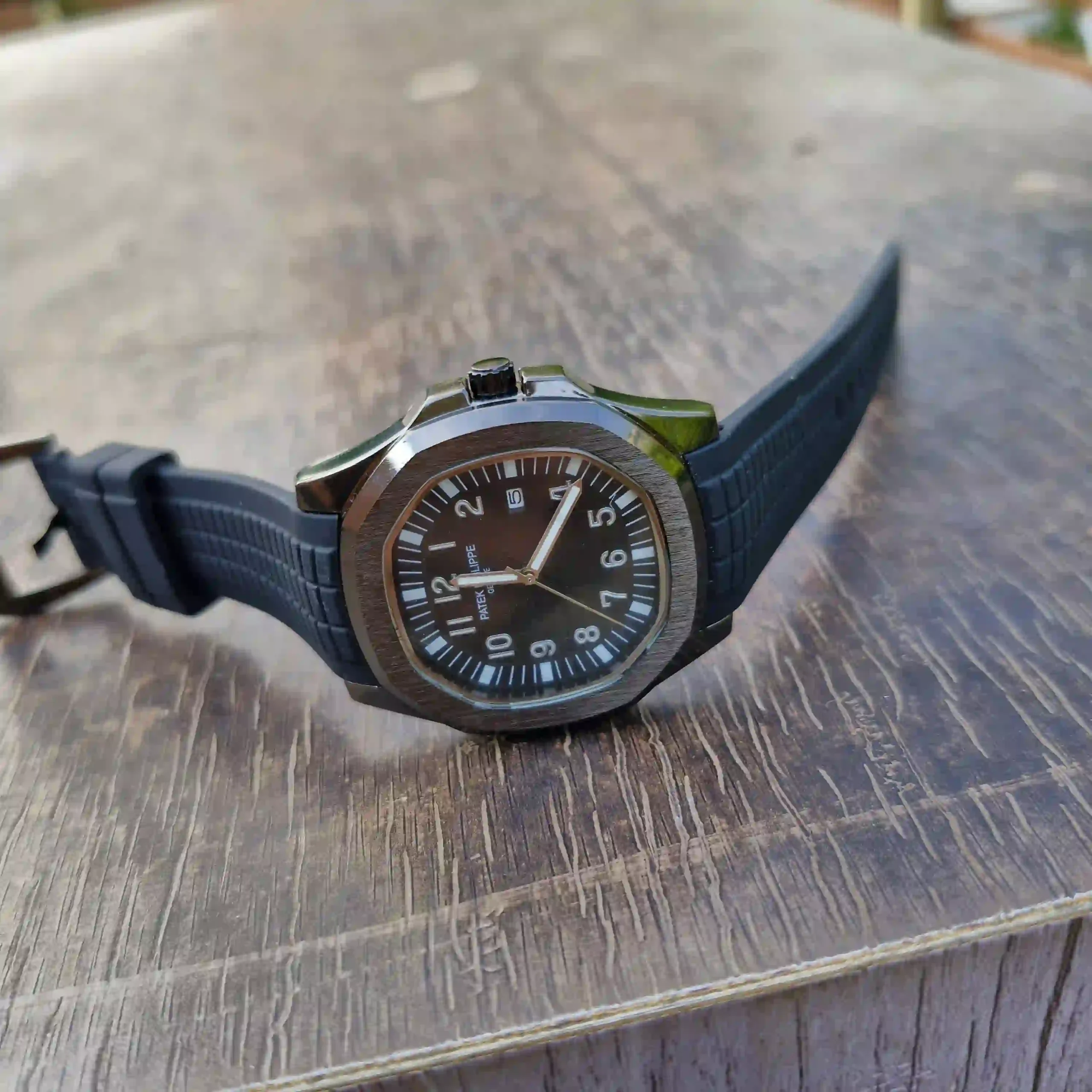 ساعت مردانه پتک فیلیپ آکوآنات مشکی، انتخابی ایدهآل برای آقایانی است که به دنبال ترکیبی از ظرافت، استایل اسپرت و کاربرد روزمره هستند. این مدل با صفحه مشکی جذاب و بند رابر فوقالعاده راحت، نیاز کسانی را برطرف میکند که میخواهند در محیط کاری، مهمانی، استایل خیابانی یا حتی تیپ نیمهرسمی، یک ساعت متفاوت و خوشاستایل داشته باشند.